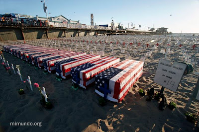 Every Sunday since February 15th, 2004, the Los Angeles chapter of Veterans for Peace (VFP) has been erecting a temporary memorial just north of the Santa Monica Pier. Each cross in the simulated cemetery represents a fallen U.S. serviceman in Iraq. Such memorial is known as the Arlington West Memorial, in reference to the Arlington Memorial Cemetery located in Washington D.C.The following photographs were taken on November 12, 2006, during the weekend celebration of Memorial Day. As of this day, the U.S. servicemen death toll in Iraq stands at 2,845, roughly the same amount of casualties from the September 11th attacks.