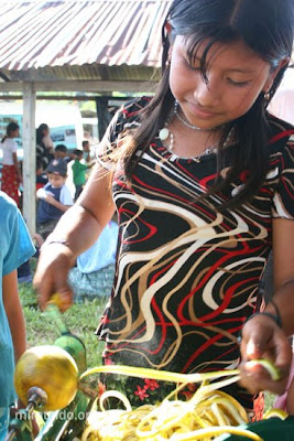 Kids attempt to reach the 100 Quetzales bill [roughly $13 US] attached to the top of a greased pole – a traditional activity during the Resistance Fair.