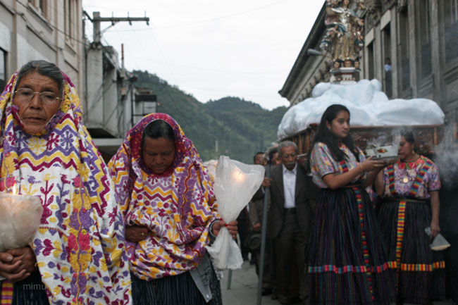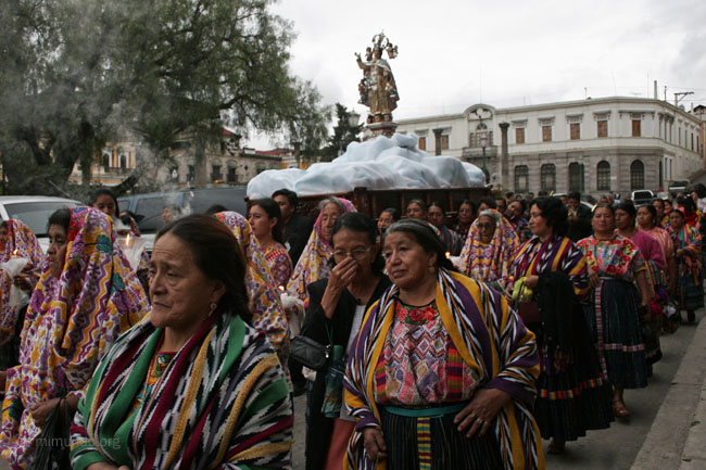 “According to Roman Catholic doctrine and the traditions of the Catholic Church, the Blessed Virgin Mary, ‘having completed the course of her earthly life, was assumed body and soul into heavenly glory.’ This means that Mary was transported into Heaven with her body and soul united. The feast day recognizing Mary’s passage into Heaven is celebrated as The Solemnity of the Assumption of the Blessed Virgin Mary by Roman Catholics. This doctrine was dogmatically and infallibly defined by Pope Pius XII on 1 November 1950. In those denominations that observe it, the Assumption is commonly celebrated on August 15.” (1)In October 1776, The Virgin of the Assumption was selected as the patron saint of Guatemala City. Following are images from a procession celebrating the annual event in the city of Quetzaltenango.