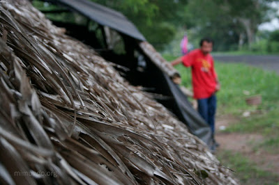 The huts, which are made from wood, palm leaves and plastic, are located only a few meters from the road.