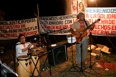 Almost a year later, on August 31, 2004, Guatemalan security forces unleashed a violent eviction in Nueva Linda which left a final tally of 12 dead: 9 peasants and 3 police officers. After the event, the family of Hector Reyes and a number of supportive members of nearby communities settled in between the few meters which separate the land lot’s fence and the highway. Four years after the disappearance of Hector Reyes and three years after the massacre, the Nueva Linda Movement for Justice continues its struggle through resistance along the side of the road.