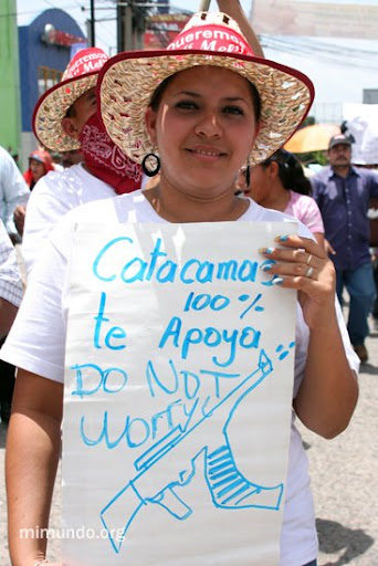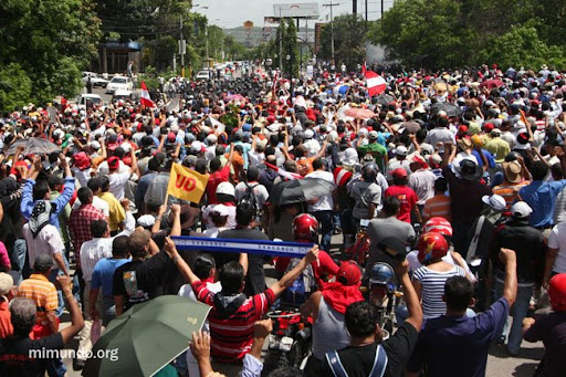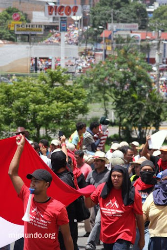 Today, thousands of people marched through the streets of Tegucigalpa in a peaceful protest to the Coup d’Etat that took place last week, on June 28th. The march headed towards Toncontin airport as the mass march expected to welcome back forcibly removed President Manuel Zelaya, endearingly known as Mel.