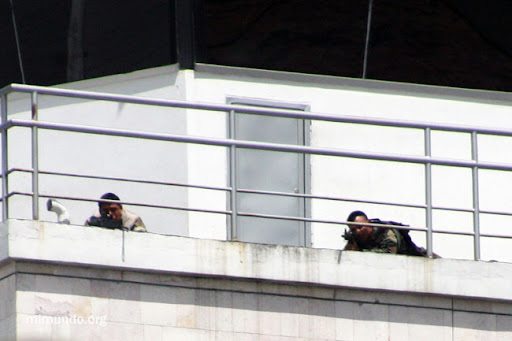 Snipers were positioned on rooftops and the control tower.