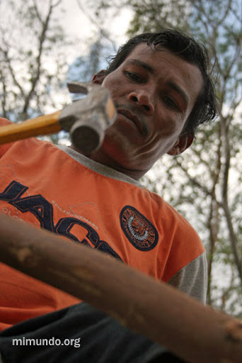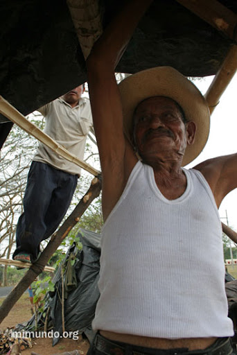 During the first years of the struggle, the community in resistance consisted of roughly ten champas, or palm-roofed huts. But, on February 2008, dozens of campesinos in solidarity joined the community settled on the narrow shoulder of the highway. The following photographic sequence displays the construction of the champas that today house members of the Justice For Nueva Linda Civil Association.