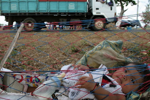 Members of the Justice For Nueva Linda Civil Association marked their fifth anniversary settled along the shoulder of the Retalhuleu-Champerico highway. Their struggle focuses on seeing justice served for the forced disappearance of Hector Reyes on September 2003 as well as the violent eviction-turned-massacre carried out in the Nueva Linda landholding on August 31st, 2004.