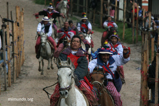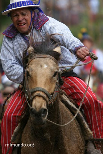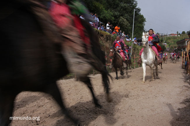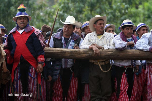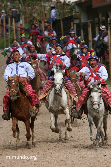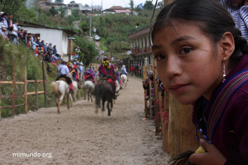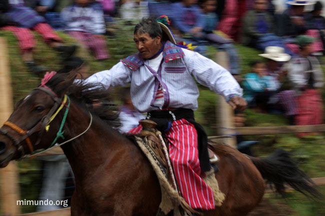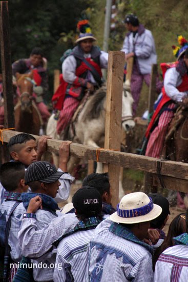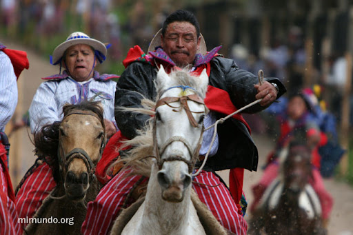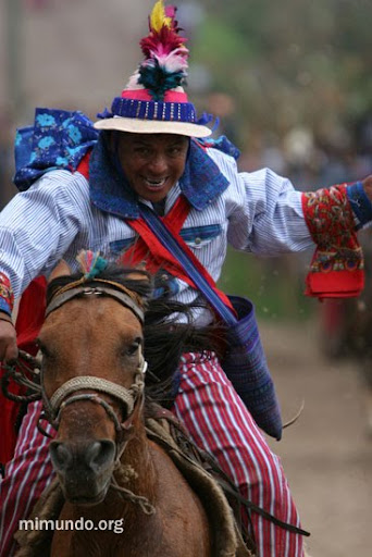 “Without a doubt, the horse races are the center of attention in the todosantero festival. Their meaning and origins are vague. One interpretation views them as a recreation of a triumphant escape by [Maya] Mam warriors from Spanish forces. A different opinion sees the event as tied with symbolism relating to the cleansing of the land, as the participants sacrifice a rooster before galloping.” (3)