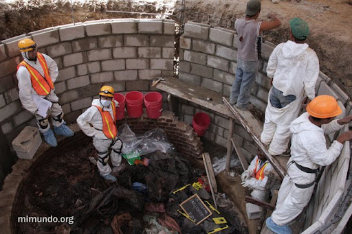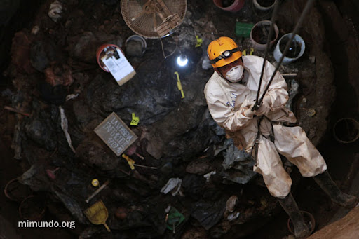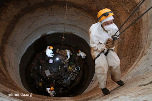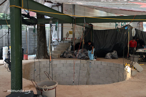 A special scaffolding is being used in order to lower and raise the forensic anthropologists through a rappel system, in addition to facilitating the extraction of soil and human remains.