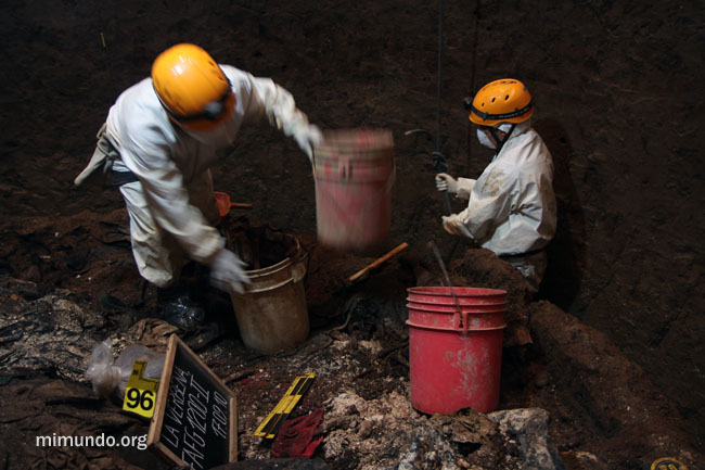 Aerial view of the FAFG team working nearly 10 meters (30 feet) below the surface in Ossuary 2.